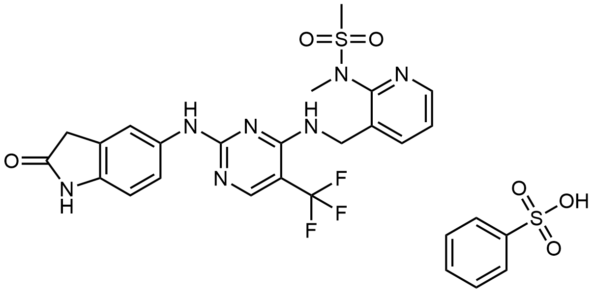 Molecular Formula: C21H20F3N7O3S.C6H6O3S
