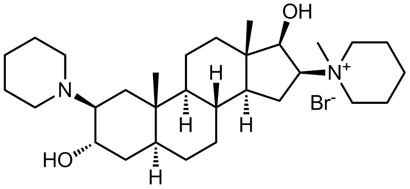 Synonyms: 1-((2S,3S,5S,8R,9S,10S,13S,14S,16S,17R)-3,17-dihydroxy-10,13-dimethyl-2-(piperidin-1-yl)hexadecahydro-1H-cyclopenta[a]phenanthren-16-yl)-1-methylpiperidin-1-ium bromide
