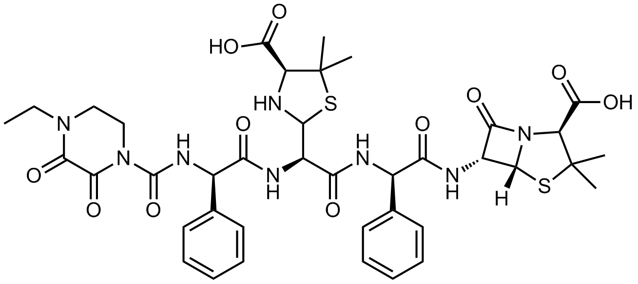 Synonyms: (2S,5R,6R)-6-((2R)-2-((2R)-2-((4S)-4-carboxy-5,5-dimethylthiazolidin-2-yl)-2-((R)-2-(4-ethyl-2,3-dioxopiperazine-1-carboxamido)-2-phenylacetamido)acetamido)-2-phenylacetamido)-3,3-dimethyl-7-oxo-4-thia-1-azabicyclo[3.2.0]heptane-2-carboxylic acid