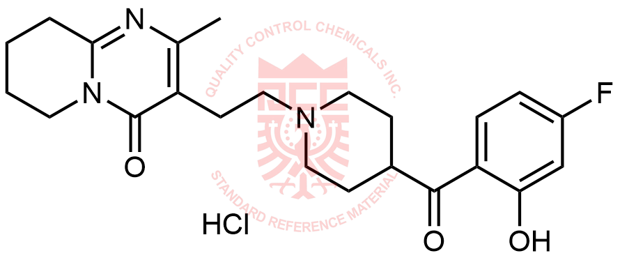 Synonyms: 3-(2-(4-(4-fluoro-2-hydroxybenzoyl)piperidin-1-yl)ethyl)-2-methyl-6,7,8,9-tetrahydro-4H-pyrido[1,2-a]pyrimidin-4-one hydrochloride