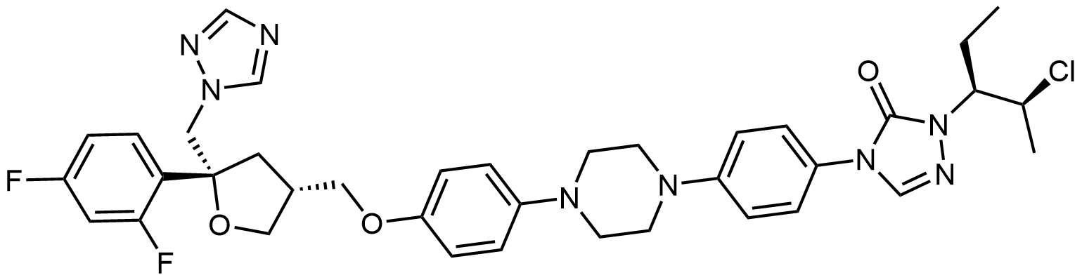 Synonyms: 4-(4-(4-(4-(((3R,5R)-5-((1H-1,2,4-triazol-1-yl)methyl)-5-(2,4-difluorophenyl)tetrahydrofuran-3-yl)methoxy)phenyl)piperazin-1-yl)phenyl)-1-((2S,3S)-2-chloropentan-3-yl)-1H-1,2,4-triazol-5(4H)-one