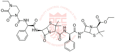 Synonyms: (2S,6R)-ethyl 6-((2R)-2-((2S,6R)-6-((R)-2-(4-ethyl-2,3-dioxopiperazine-1-carboxamido)-2-phenylacetamido)-3,3-dimethyl-7-oxo-4-thia-1-azabicyclo[3.2.0]heptane-2-carboxamido)-2-phenylacetamido)-3,3-dimethyl-7-oxo-4-thia-1-azabicyclo[3.2.0]heptane-2-carboxylate