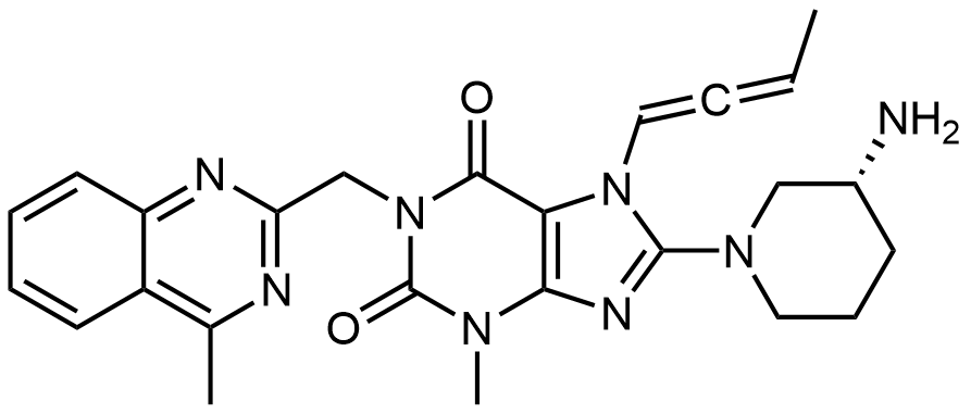 Synonyms: 8-((R)-3-aminopiperidin-1-yl)-7-(buta-1,2-dien-1-yl)-3-methyl-1-((4-methylquinazolin-2-yl)methyl)-1H-purine-2,6(3H,7H)-dione