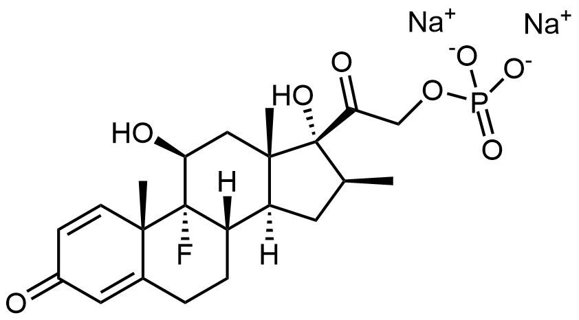 Synonyms: sodium 2-((8S,9R,10S,11S,13S,14S,16S,17R)-9-fluoro-11,17-dihydroxy-10,13,16-trimethyl-3-oxo-6,7,8,9,10,11,12,13,14,15,16,17-dodecahydro-3H-cyclopenta[a]phenanthren-17-yl)-2-oxoethyl phosphate