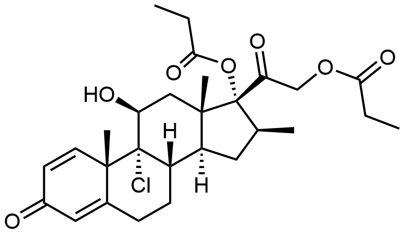 Synonyms: (8S,9R,10S,11S,13S,14S,16S,17R)-9,11-dichloro-10,13,16-trimethyl-3-oxo-17-(2-(propionyloxy)acetyl)-6,7,8,9,10,11,12,13,14,15,16,17-dodecahydro-3H-cyclopenta[a]phenanthren-17-yl propionate