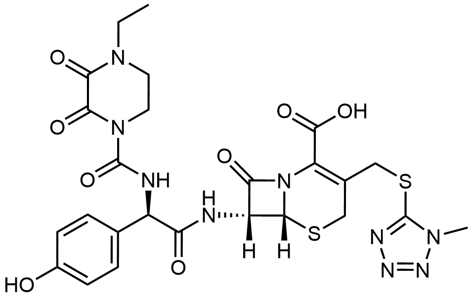 Synonyms: (6R,7R)-7-((R)-2-(4-ethyl-2,3-dioxopiperazine-1-carboxamido)-2-(4-hydroxyphenyl)acetamido)-3-(((1-methyl-1H-tetrazol-5-yl)thio)methyl)-8-oxo-5-thia-1-azabicyclo[4.2.0]oct-2-ene-2-carboxylic acid