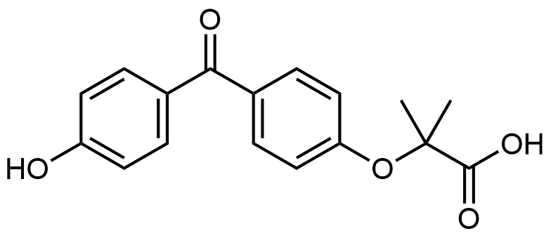 Synonyms: 2-(4-(4-hydroxybenzoyl)phenoxy)-2-methylpropanoic acid