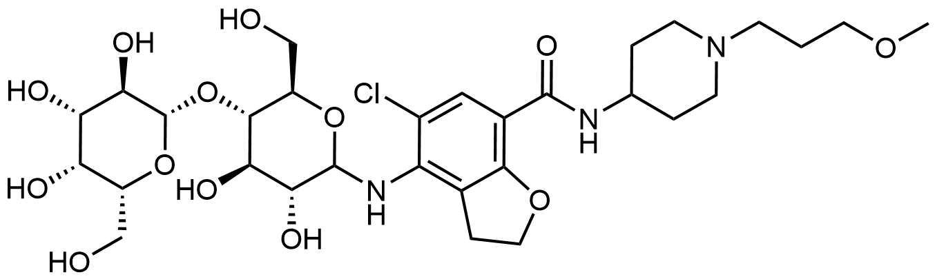Synonyms: 5-chloro-4-(((3R,4R,5S,6R)-3,4-dihydroxy-6-(hydroxymethyl)-5-(((2S,3R,4S,5R,6R)-3,4,5-trihydroxy-6-(hydroxymethyl)tetrahydro-2H-pyran-2-yl)oxy)tetrahydro-2H-pyran-2-yl)amino)-N-(1-(3-methoxypropyl)piperidin-4-yl)-2,3-dihydrobenzofuran-7-carboxamide