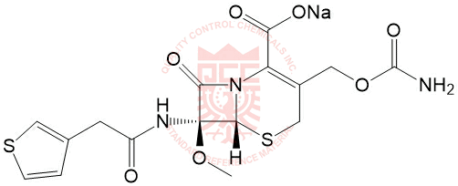 Synonyms: sodium (6R,7S)-3-((carbamoyloxy)methyl)-7-methoxy-8-oxo-7-(2-(thiophen-3-yl)acetamido)-5-thia-1-azabicyclo[4.2.0]oct-2-ene-2-carboxylate