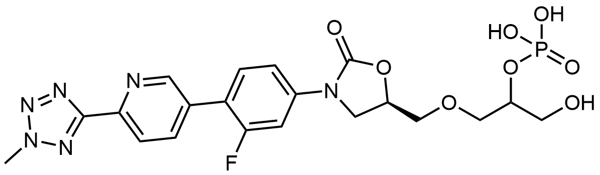 Synonyms: 1-(((R)-3-(3-fluoro-4-(6-(2-methyl-2H-tetrazol-5-yl)pyridin-3-yl)phenyl)-2-oxooxazolidin-5-yl)methoxy)-3-hydroxypropan-2-yl dihydrogen phosphate
