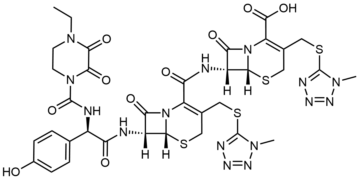 Synonyms: (6R,7R)-7-((6R,7R)-7-((R)-2-(4-ethyl-2,3-dioxopiperazine-1-carboxamido)-2-(4-hydroxyphenyl)acetamido)-3-(((1-methyl-1H-tetrazol-5-yl)thio)methyl)-8-oxo-5-thia-1-azabicyclo[4.2.0]oct-2-ene-2-carboxamido)-3-(((1-methyl-1H-tetrazol-5-yl)thio)methyl)-8-oxo-5-thia-1-azabicyclo[4.2.0]oct-2-ene-2-carboxylic acid