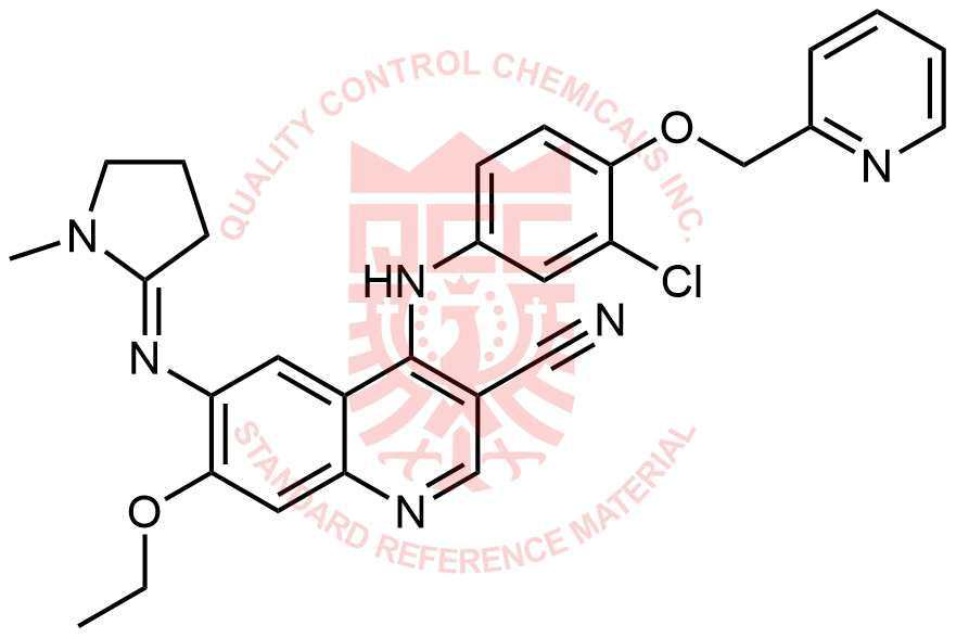 Synonyms: (E)-4-((3-chloro-4-(pyridin-2-ylmethoxy)phenyl)amino)-7-ethoxy-6-((1-methylpyrrolidin-2-ylidene)amino)quinoline-3-carbonitrile