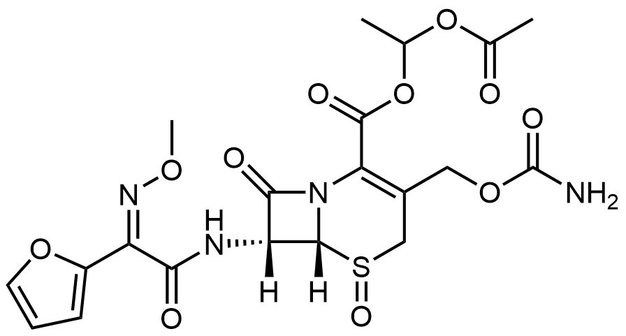 Synonyms: (6R,7R)-1-acetoxyethyl 3-((carbamoyloxy)methyl)-7-((Z)-2-(furan-2-yl)-2-(methoxyimino)acetamido)-8-oxo-5-thia-1-azabicyclo[4.2.0]oct-2-ene-2-carboxylate 5-oxide