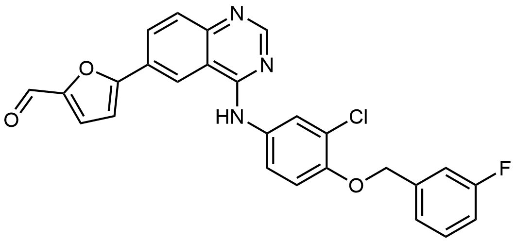 Synonyms: 5-(4-((3-chloro-4-((3-fluorobenzyl)oxy)phenyl)amino)quinazolin-6-yl)furan-2-carbaldehyde