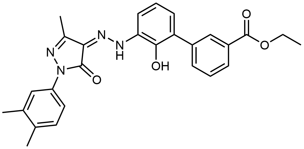 Synonyms: ethyl (Z)-3'-(2-(1-(3,4-dimethylphenyl)-3-methyl-5-oxo-1,5-dihydro-4H-pyrazol-4-ylidene)hydrazineyl)-2'-hydroxy-[1,1'-biphenyl]-3-carboxylate