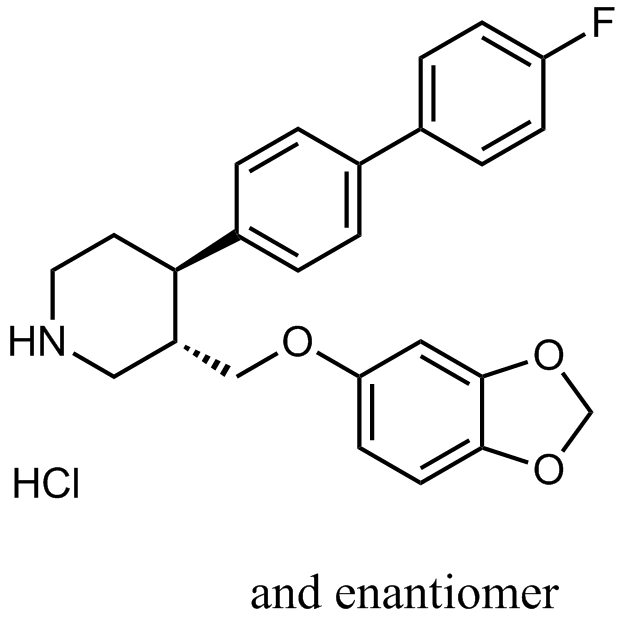 Synonyms: (3SR,4RS)-3-((benzo[d][1,3]dioxol-5-yloxy)methyl)-4-(4'-fluoro-[1,1'-biphenyl]-4-yl)piperidine hydrochloride