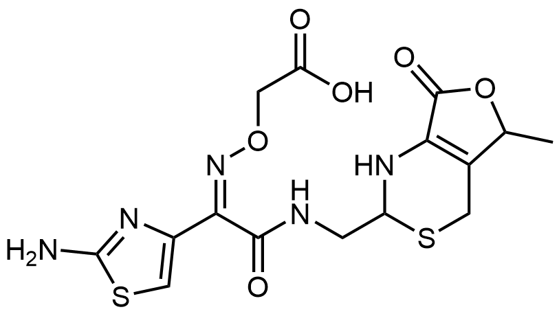 Synonyms: (Z)-2-(((1-(2-aminothiazol-4-yl)-2-(((5-methyl-7-oxo-2,4,5,7-tetrahydro-1H-furo[3,4-d][1,3]thiazin-2-yl)methyl)amino)-2-oxoethylidene)amino)oxy)acetic acid