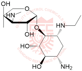 Synonyms: (2R,3R,4R,5R)-2-(((1S,2S,3R,4S,6R)-4-amino-3-(((2S,3R)-6-(aminomethyl)-3-(ethylamino)-3,4-dihydro-2H-pyran-2-yl)oxy)-6-(ethylamino)-2-hydroxycyclohexyl)oxy)-5-methyl-4-(methylamino)tetrahydro-2H-pyran-3,5-diol