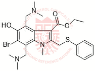 Synonyms: ethyl 6-bromo-4,7-bis((dimethylamino)methyl)-5-hydroxy-1-methyl-2-((phenylthio)methyl)-1H-indole-3-carboxylate