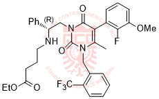 Synonyms: (R)-ethyl 4-((2-(5-(2-fluoro-3-methoxyphenyl)-4-methyl-2,6-dioxo-3-(2-(trifluoromethyl)benzyl)-2,3-dihydropyrimidin-1(6H)-yl)-1-phenylethyl)amino)butanoate