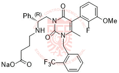 Synonyms: sodium (R)-4-((2-(5-(2-fluoro-3-methoxyphenyl)-4-methyl-2,6-dioxo-3-(2-(trifluoromethyl)benzyl)-2,3-dihydropyrimidin-1(6H)-yl)-1-phenylethyl)amino)butanoate