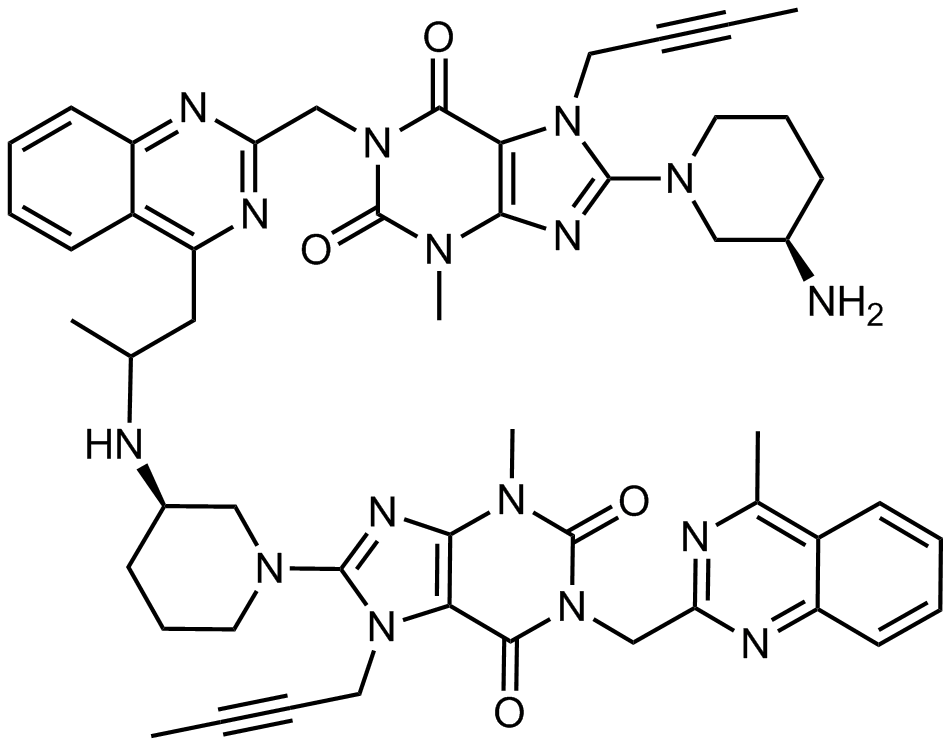 Synonyms: 8-((R)-3-aminopiperidin-1-yl)-7-(but-2-yn-1-yl)-1-((4-(2-(((R)-1-(7-(but-2-yn-1-yl)-3-methyl-1-((4-methylquinazolin-2-yl)methyl)-2,6-dioxo-2,3,6,7-tetrahydro-1H-purin-8-yl)piperidin-3-yl)amino)propyl)quinazolin-2-yl)methyl)-3-methyl-1H-purine-2,6(3H,7H)-dione