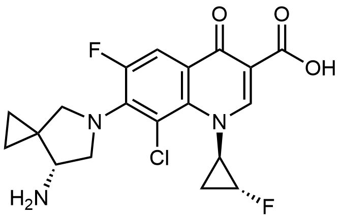 Synonyms: 7-((R)-7-amino-5-azaspiro[2.4]heptan-5-yl)-8-chloro-6-fluoro-1-((1R,2R)-2-fluorocyclopropyl)-4-oxo-1,4-dihydroquinoline-3-carboxylic acid