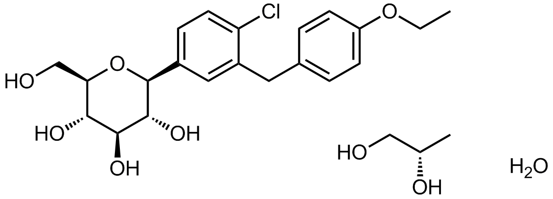 Synonyms: (2S,3R,4R,5S,6R)-2-(4-chloro-3-(4-ethoxybenzyl)phenyl)-6-(hydroxymethyl)tetrahydro-2H-pyran-3,4,5-triol compound with (S)-propane-1,2-diol (1:1) hydrate