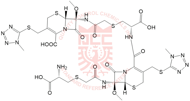 Synonyms: (6R,7S)-7-(2-(((S)-2-((6R,7S)-7-(2-(((S)-2-amino-2-carboxyethyl)thio)acetamido)-7-methoxy-3-(((1-methyl-1H-tetrazol-5-yl)thio)methyl)-8-oxo-5-thia-1-azabicyclo[4.2.0]oct-2-ene-2-carboxamido)-2-carboxyethyl)thio)acetamido)-7-methoxy-3-(((1-methyl-1H-tetrazol-5-yl)thio)methyl)-8-oxo-5-thia-1-azabicyclo[4.2.0]oct-2-ene-2-carboxylic acid