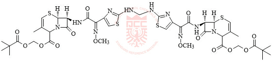 Synonyms: (6S,7S)-(pivaloyloxy)methyl 7-(2-(methoxyimino)-2-(2-((((4-(1-(methoxyimino)-2-(((6R,7R)-3-methyl-8-oxo-2-(((pivaloyloxy)methoxy)carbonyl)-5-thia-1-azabicyclo[4.2.0]oct-3-en-7-yl)amino)-2-oxoethyl)thiazol-2-yl)amino)methyl)amino)thiazol-4-yl)acetamido)-3-methyl-8-oxo-5-thia-1-azabicyclo[4.2.0]oct-3-ene-2-carboxylate