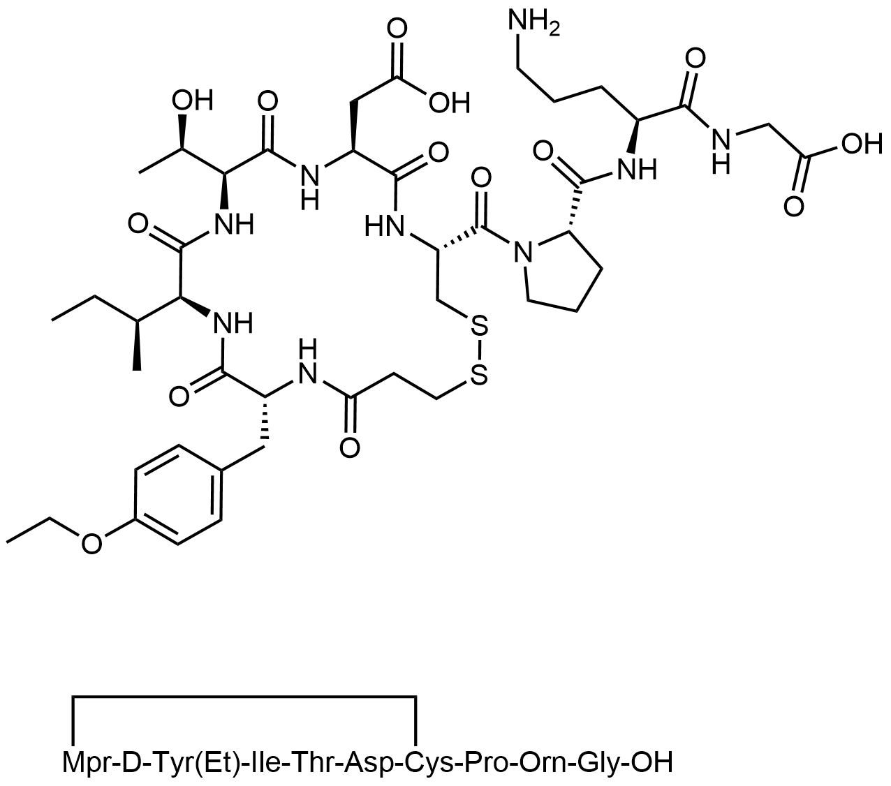 Synonyms: 2-((4R,7S,10S,13S,16R)-4-((S)-2-(((S)-5-amino-1-((carboxymethyl)amino)-1-oxopentan-2-yl)carbamoyl)pyrrolidine-1-carbonyl)-13-((S)-sec-butyl)-16-(4-ethoxybenzyl)-10-((R)-1-hydroxyethyl)-6,9,12,15,18-pentaoxo-1,2-dithia-5,8,11,14,17-pentaazacycloicosan-7-yl)acetic acid