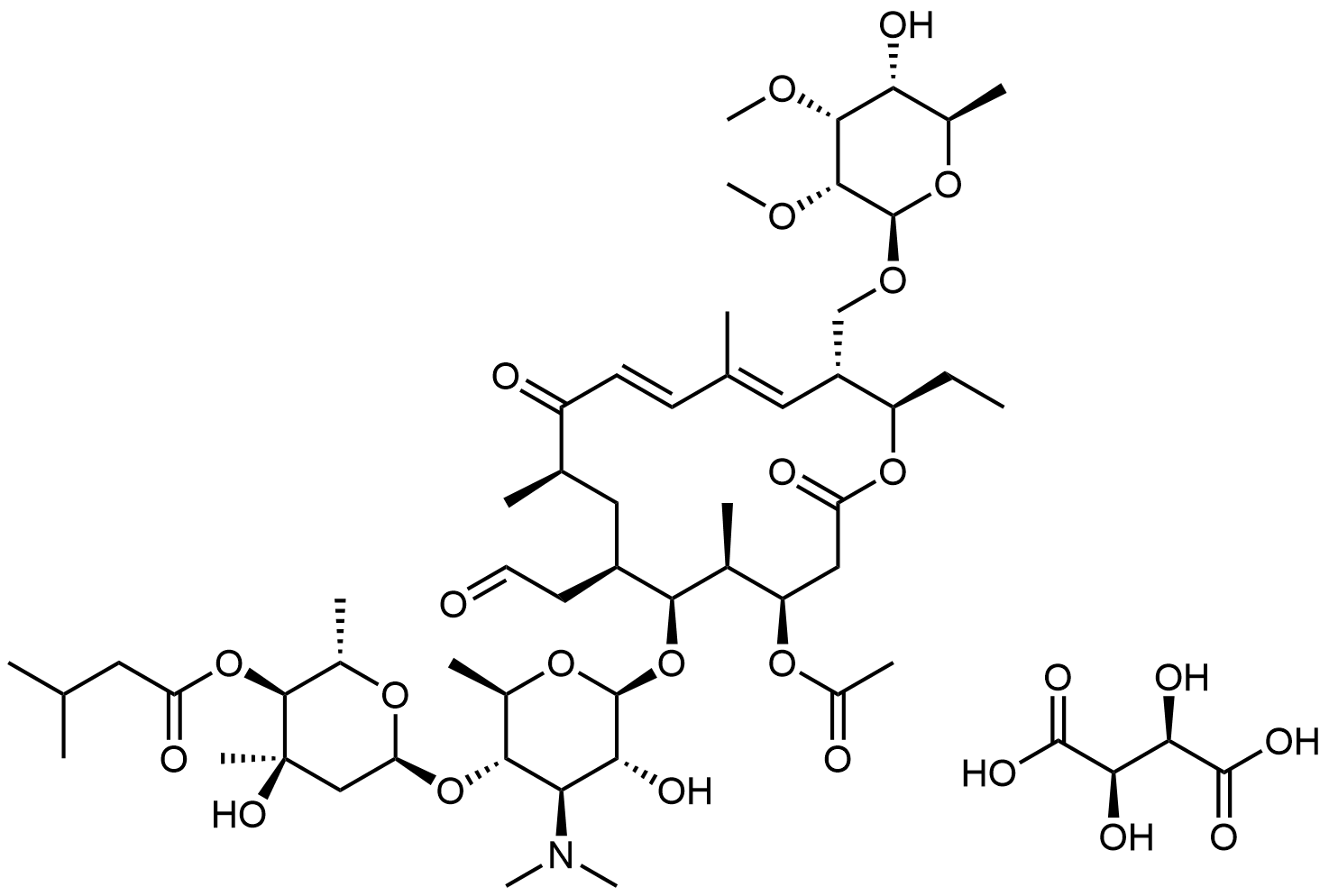 Synonyms: (2S,3S,4R,6S)-6-(((2R,3S,4R,5R,6R)-6-(((4R,5S,6S,7R,9R,11E,13E,15R,16R)-4-acetoxy-16-ethyl-15-((((2R,3R,4R,5R,6R)-5-hydroxy-3,4-dimethoxy-6-methyltetrahydro-2H-pyran-2-yl)oxy)methyl)-5,9,13-trimethyl-2,10-dioxo-7-(2-oxoethyl)oxacyclohexadeca-11,13-dien-6-yl)oxy)-4-(dimethylamino)-5-hydroxy-2-methyltetrahydro-2H-pyran-3-yl)oxy)-4-hydroxy-2,4-dimethyltetrahydro-2H-pyran-3-yl 3-methylbutanoate (2R,3R)-2,3-dihydroxysuccinic acid