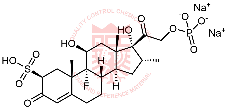 Synonyms: sodium 2-((2S,8S,9R,10S,11S,13S,14S,16R,17R)-9-fluoro-11,17-dihydroxy-10,13,16-trimethyl-3-oxo-2-sulfo-2,3,6,7,8,9,10,11,12,13,14,15,16,17-tetradecahydro-1H-cyclopenta[a]phenanthren-17-yl)-2-oxoethyl phosphate
