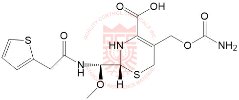 Synonyms: (2R)-5-((carbamoyloxy)methyl)-2-(methoxy(2-(thiophen-2-yl)acetamido)methyl)-3,6-dihydro-2H-1,3-thiazine-4-carboxylic acid