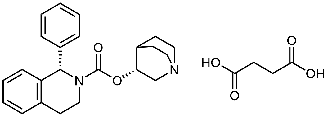 Synonyms: (R)-quinuclidin-3-yl (S)-1-phenyl-3,4-dihydroisoquinoline-2(1H)-carboxylate succinate