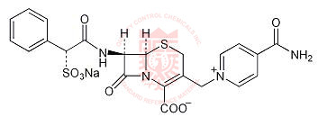 Synonyms: Sodium (6R,7R)-3-[(4-carbamoylpyridin-1-ium-1-yl)methyl]-8-oxo-7-[[(2R)-2-phenyl-2-sulfonatoacetyl]amino]-5-thia-1-azabicyclo[4.2.0]oct-2-ene-2-carboxylate