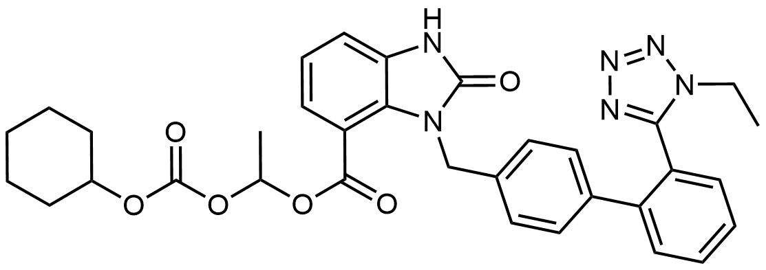 Synonyms: 2-Ethoxy-1-[[2'-[1-ethyl-1H-tetrazol-5-yl][1,1'-biphenyl]-4-yl]methyl]-1H-benzimidazole-7-carboxylic acid 1-[[(cyclohexyloxy) carbonyl]oxy]ethyl ester