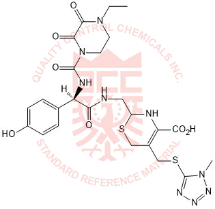 Synonyms: 2-(((R)-2-(4-ethyl-2,3-dioxopiperazine-1-carboxamido)-2-(4-hydroxyphenyl)acetamido)methyl)-5-(((1-methyl-1H-tetrazol-5-yl)thio)methyl)-3,6-dihydro-2H-1,3-thiazine-4-carboxylic acid