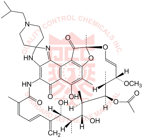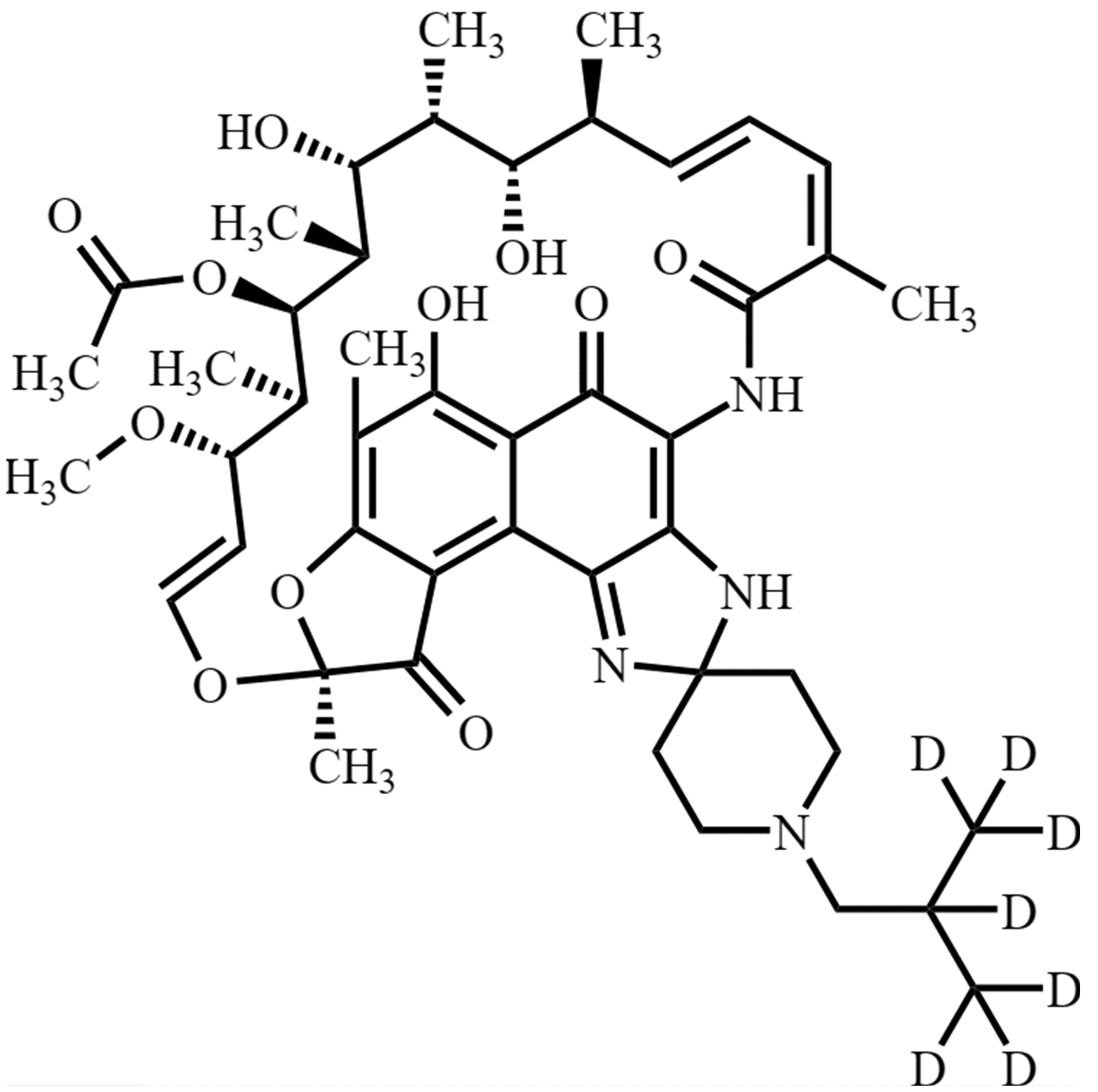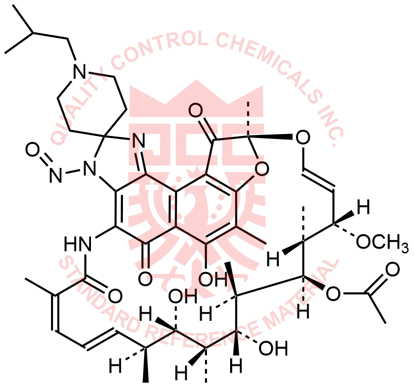 Synonyms: (9S,12E,14S,15R,16S,17R,18R,19R,20S,21S,22E,24Z)- 6,18,20-trihydroxy-14-methoxy-7,9,15,17,19,21,25- heptamethyl-1′-(2-methylpropyl)-5,10,26-trioxo-3,5,9,10- tetrahydrospiro[9,4-(epoxypentadeca[1,11,13]trienimino)- 2H-furo[2′,3′:7,8]naphtho[1,2-d]imidazole-2,4′-piperidine]- 16-yl acetate