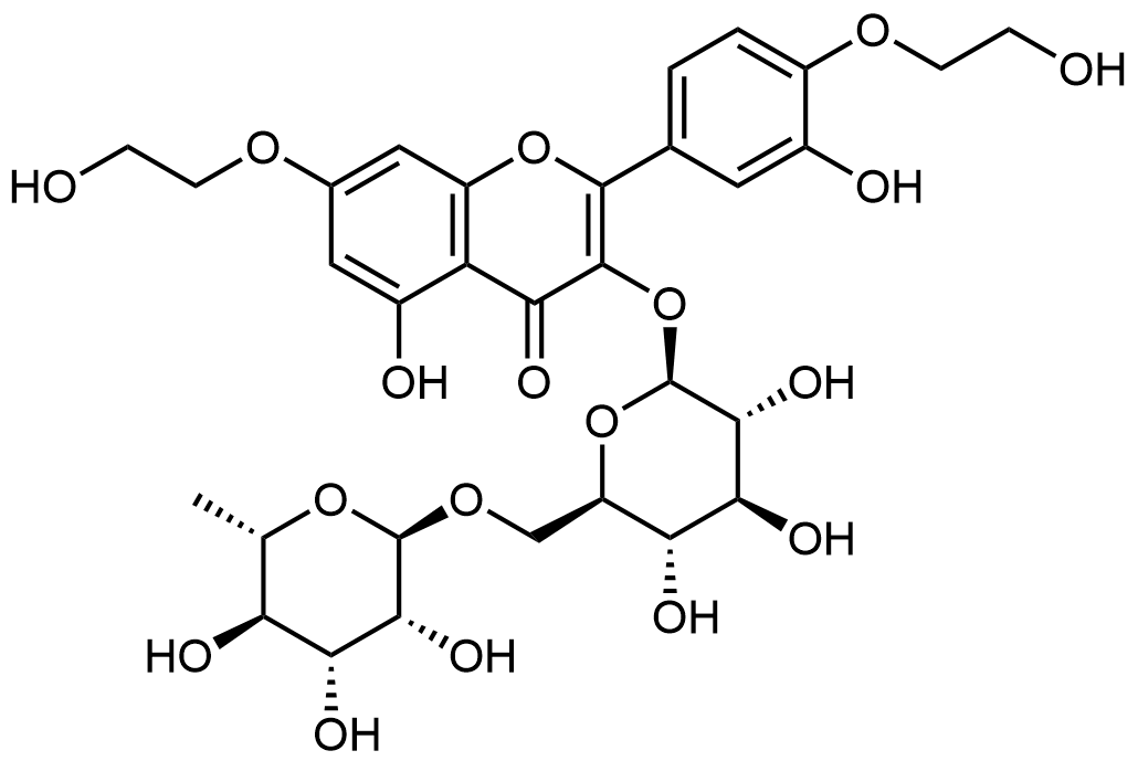 Synonyms: 2-(3,4-bis(2-hydroxyethoxy)phenyl)-5-hydroxy-7-(2-hydroxyethoxy)-3-(((2S,3R,4S,5S,6R)-3,4,5-trihydroxy-6-((((2R,3R,4R,5R,6S)-3,4,5-trihydroxy-6-methyltetrahydro-2H-pyran-2-yl)oxy)methyl)tetrahydro-2H-pyran-2-yl)oxy)-4H-chromen-4-one