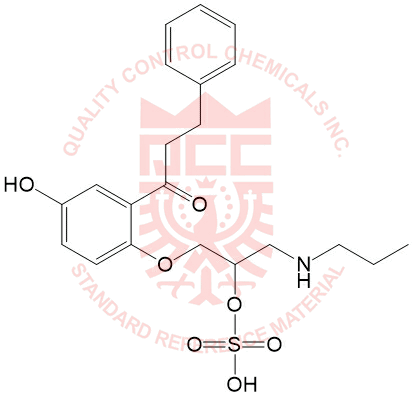 Synonyms: 1-(4-hydroxy-2-(3-phenylpropanoyl)phenoxy)-3-(propylamino)propan-2-yl hydrogen sulfate