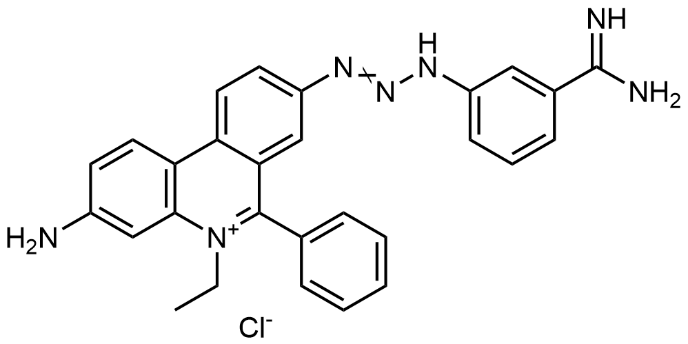 Synonyms: 3-amino-8-(3-(3-carbamimidoylphenyl)triaz-1-en-1-yl)-5-ethyl-6-phenylphenanthridin-5-ium chloride