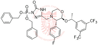 Synonyms: dibenzyl (3-(((2S,3S)-2-((R)-1-(3,5-bis(trifluoromethyl)phenyl)ethoxy)-3-(4-fluorophenyl)morpholino)methyl)-5-oxo-4,5-dihydro-1H-1,2,4-triazol-1-yl)phosphonate