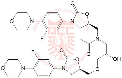 Synonyms: N-(3-(((R)-3-(3-fluoro-4-morpholinophenyl)-2-oxooxazolidin-5-yl)methoxy)-2-hydroxypropyl)-N-(((S)-3-(3-fluoro-4-morpholinophenyl)-2-oxooxazolidin-5-yl)methyl)acetamide