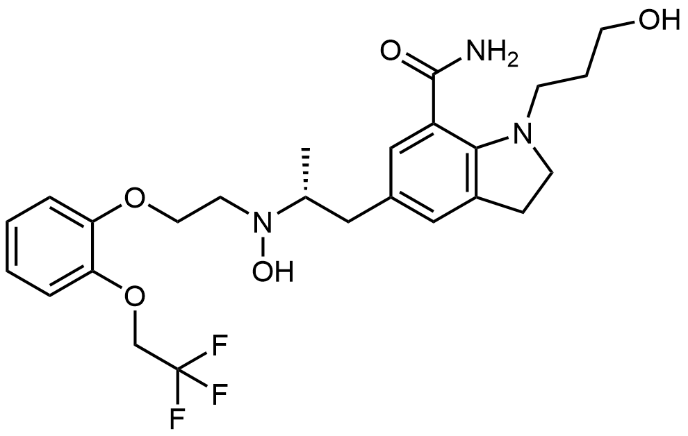 Synonyms: (R)-5-(2-(hydroxy(2-(2-(2,2,2-trifluoroethoxy)phenoxy)ethyl)amino)propyl)-1-(3-hydroxypropyl)indoline-7-carboxamide