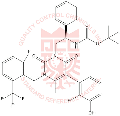 Synonyms: (R)-tert-butyl (2-(5-(2-fluoro-3-hydroxyphenyl)-3-(2-fluoro-6-(trifluoromethyl)benzyl)-4-methyl-2,6-dioxo-2,3-dihydropyrimidin-1(6H)-yl)-1-phenylethyl)carbamate