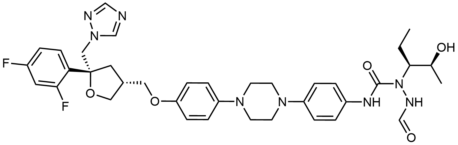 Synonyms: N-(4-(4-(4-(((3R,5R)-5-((1H-1,2,4-triazol-1-yl)methyl)-5-(2,4-difluorophenyl)tetrahydrofuran-3-yl)methoxy)phenyl)piperazin-1-yl)phenyl)-2-formyl-1-((2S,3S)-2-hydroxypentan-3-yl)hydrazine-1-carboxamide
