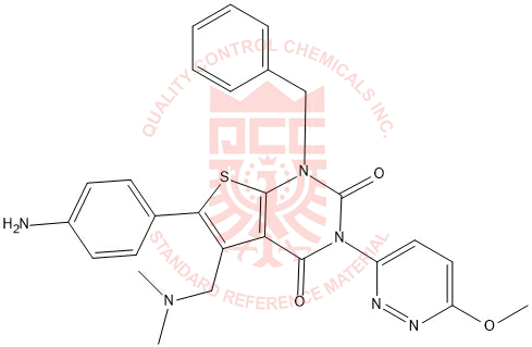 Synonyms: 6-(4-aminophenyl)-1-benzyl-5-((dimethylamino)methyl)-3-(6-methoxypyridazin-3-yl)thieno[2,3-d]pyrimidine-2,4(1H,3H)-dione
