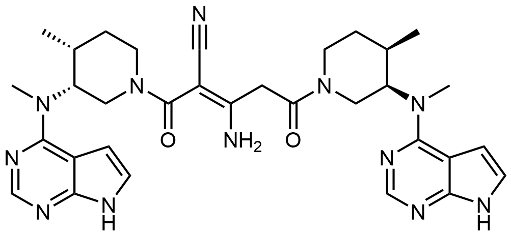 Synonyms: (Z)-3-amino-5-((3R,4R)-4-methyl-3-(methyl(7H-pyrrolo[2,3-d]pyrimidin-4-yl)amino)piperidin-1-yl)-2-((3R,4R)-4-methyl-3-(methyl(7H-pyrrolo[2,3-d]pyrimidin-4-yl)amino)piperidine-1-carbonyl)-5-oxopent-2-enenitrile