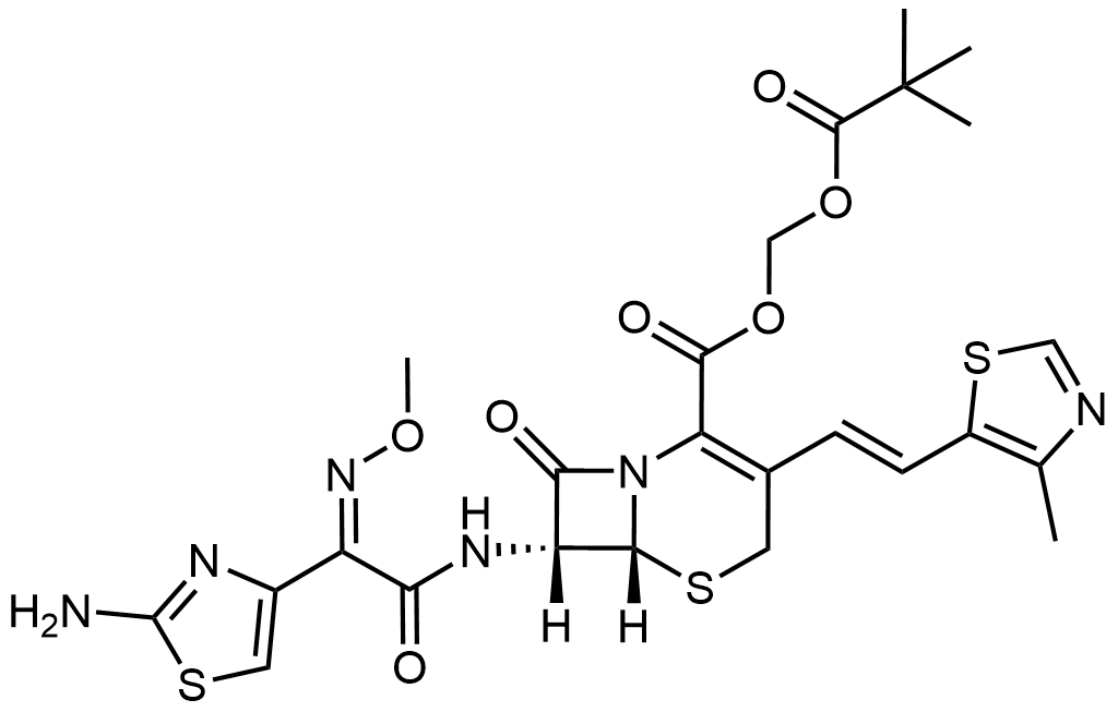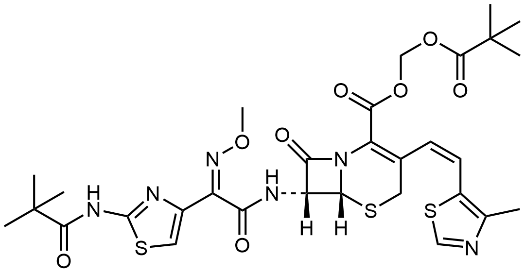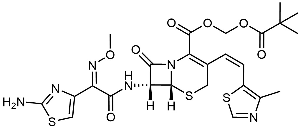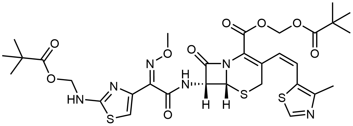 Synonyms: (pivaloyloxy)methyl 7-((Z)-2-(2-((4-methoxybenzyl)amino)thiazol-4-yl)-2-(methoxyimino)acetamido)-3-((Z)-2-(4-methylthiazol-5-yl)vinyl)-8-oxo-5-thia-1-azabicyclo[4.2.0]oct-2-ene-2-carboxylate